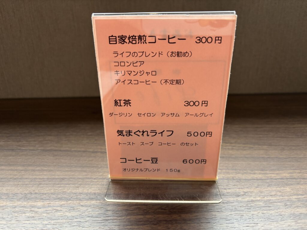 ちなみに、メニューは右の通り!メニューがありすぎて選べん!という方には、とてつもなくありがたいシステムです。(上の写真は「気まぐれライフ」)