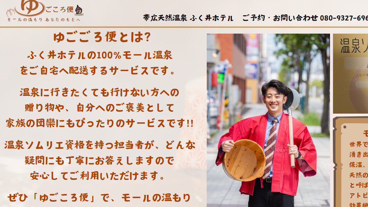 でふく井さんのほうのHPをみていたら、「ゆごごろ便」というサービスが!なんと温泉を運んでくれるそうな。200リッターで3,500円。もはや200リッターという感覚がないので安いんだか高いんだかわからん。十勝管内限定だそうな。いいな~。
